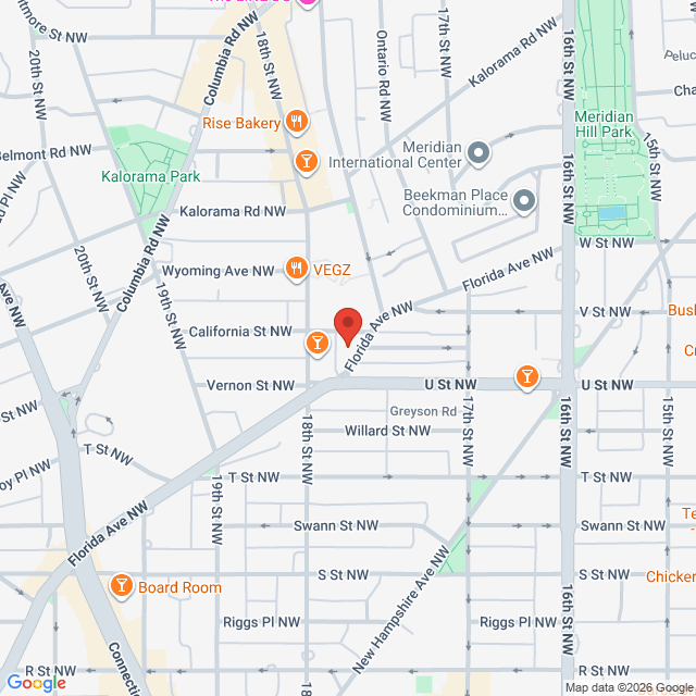 15 min. walk from Dupont Circle Metro North Exit; 16 min walk from U Street/African-Amer Civil War Memorial/Cardozo, on 12th and U; On Bus lines C51, C653 Street parking only.